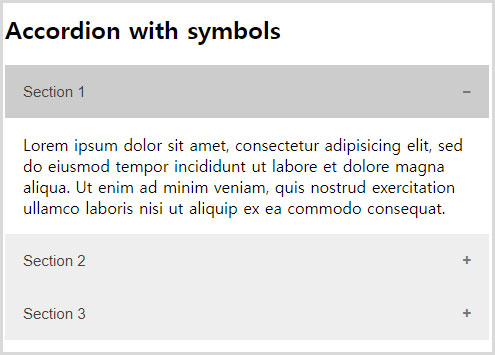 섹션1을 누르면 아코디언메뉴가 열립니다.