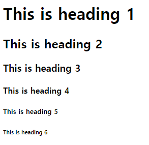 <h1>가장 중요한 제목을 정의합니다. <h6>가장 덜 중요한 제목을 정의합니다.